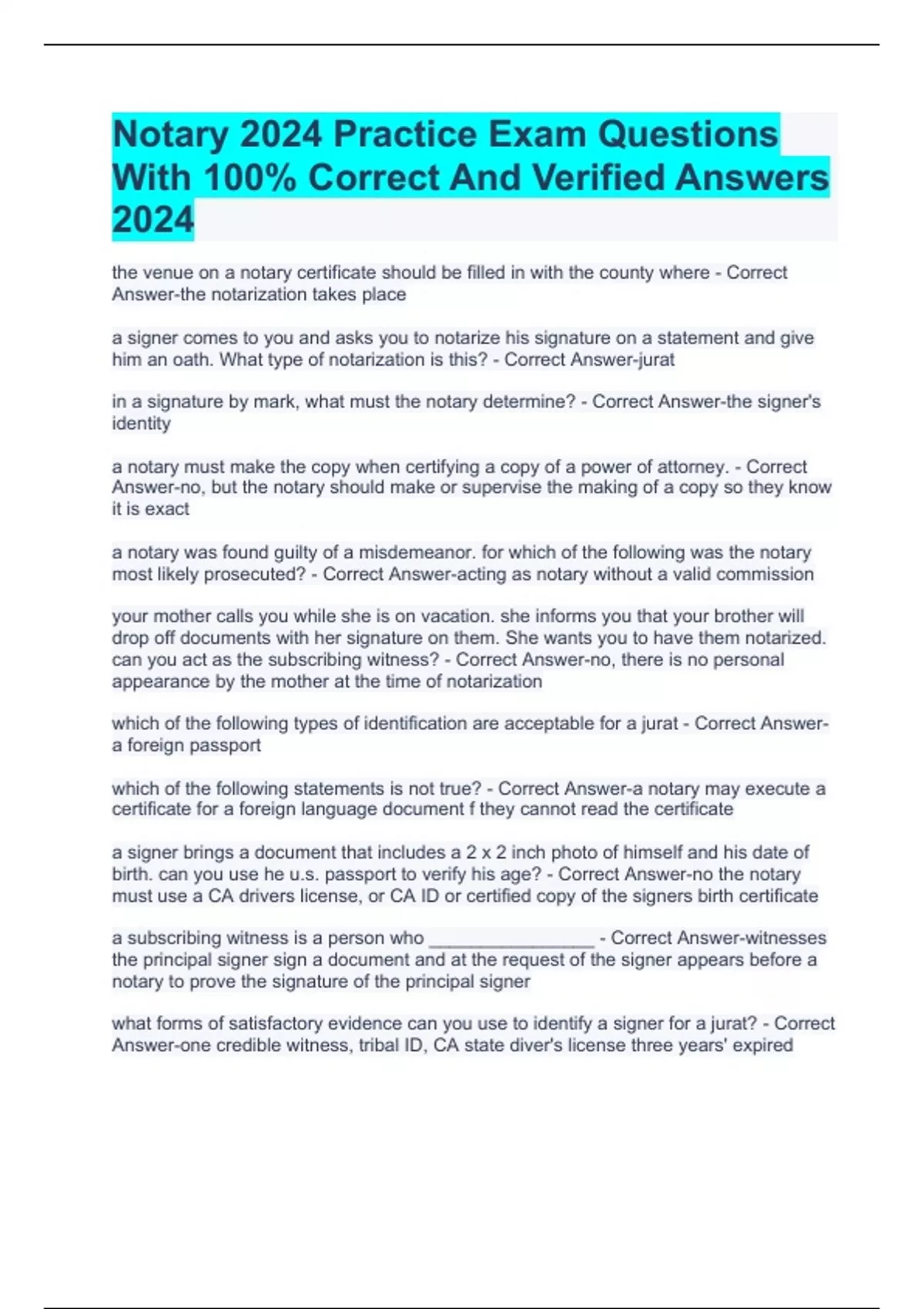 Notary 2024 Practice Exam Questions With 100 Correct And Verified , You can register for a california notary public examination online below!